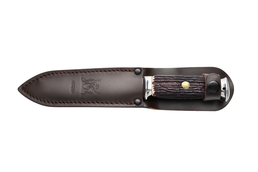 The handle is a very successful imitation of a deer antler. Venado comes with a leather case. Hunting knife VENADO belongs to the original products of Mikov.