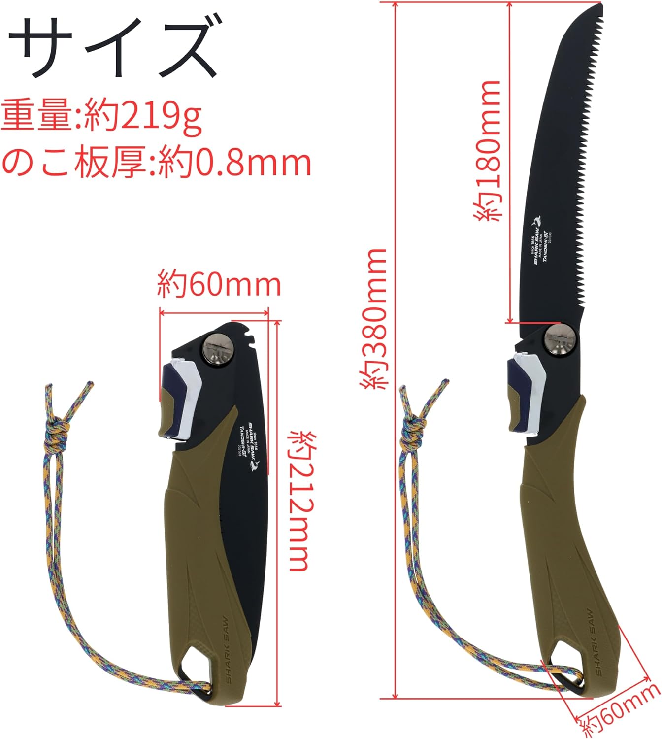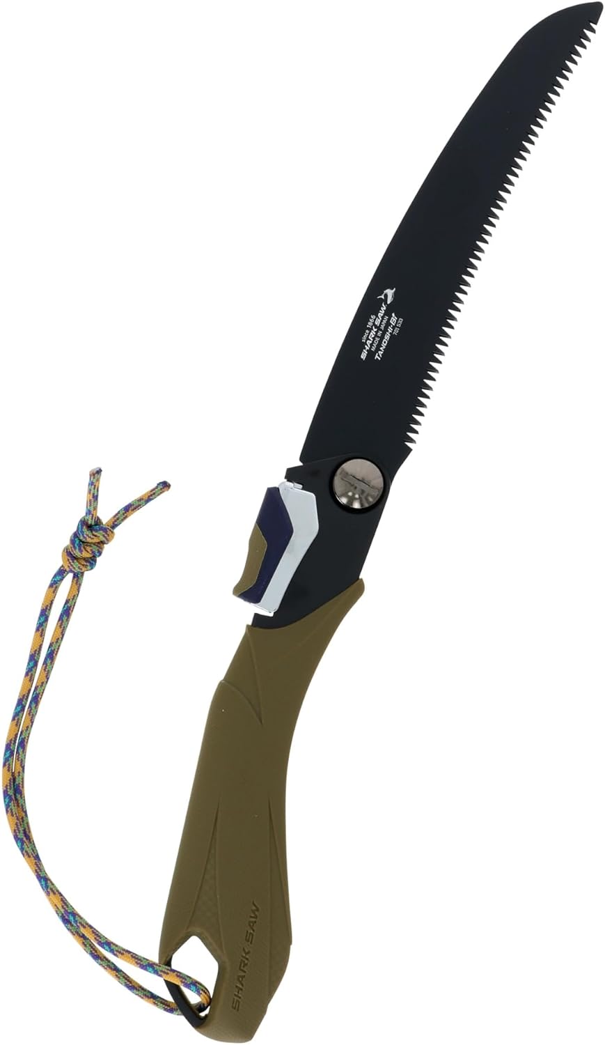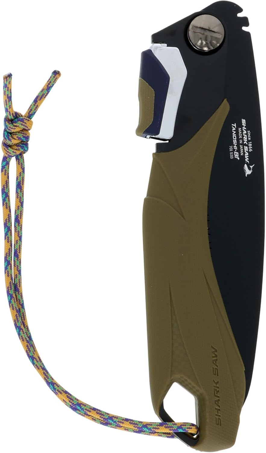منشار تاكاجي الياباني عالي الدقة، بشفرة فولاذية منحنية SK-85 بطول 180 مم، مطلية بالفلور، وقطر 3.2 مم لقطع الحطب والأشجار بكفاءة. يتميز بحبل باراكورد بطول 60 سم مع رباط عقدة ثعبان، ومناسب للاستخدام في الهواء الطلق.