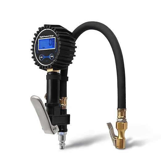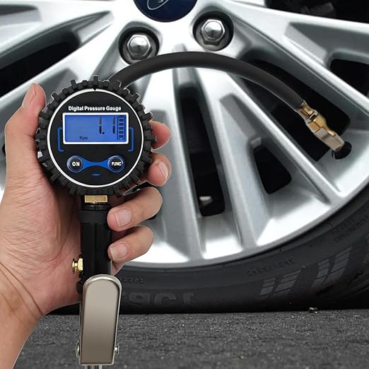 مقياس إطارات رقمي دقيق وموثوق به مع شاشة LCD مدمجة لقراءات سهلة وميزة إيقاف التشغيل التلقائي لتوفير البطارية.